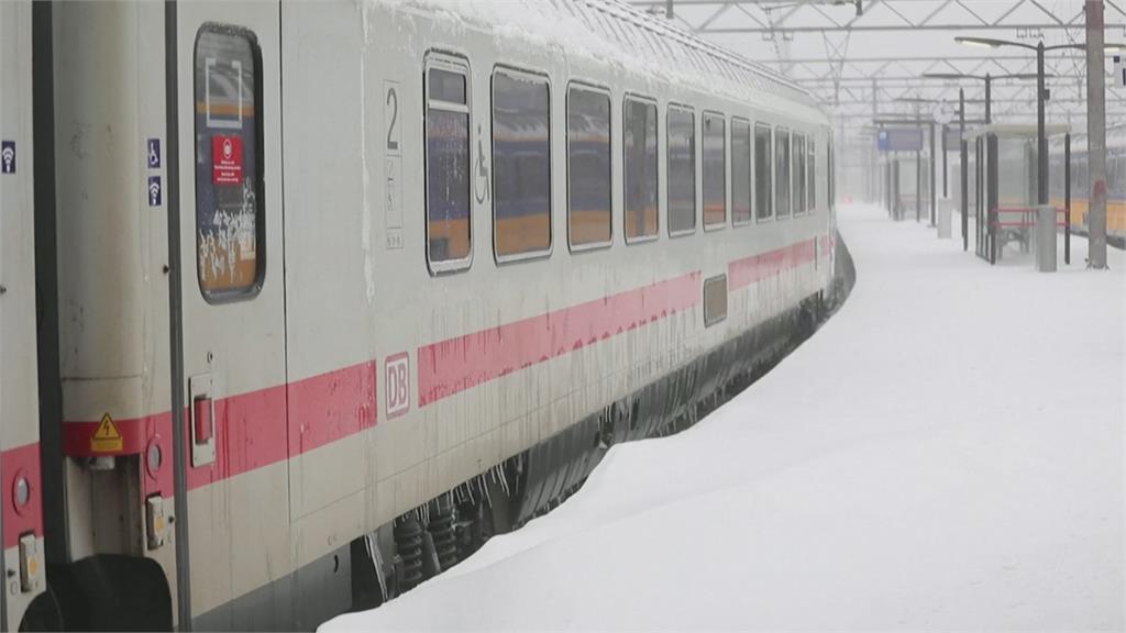 連接荷蘭與德國的國際鐵路因暴風雪而停駛。(圖/擷取自路透社影片)