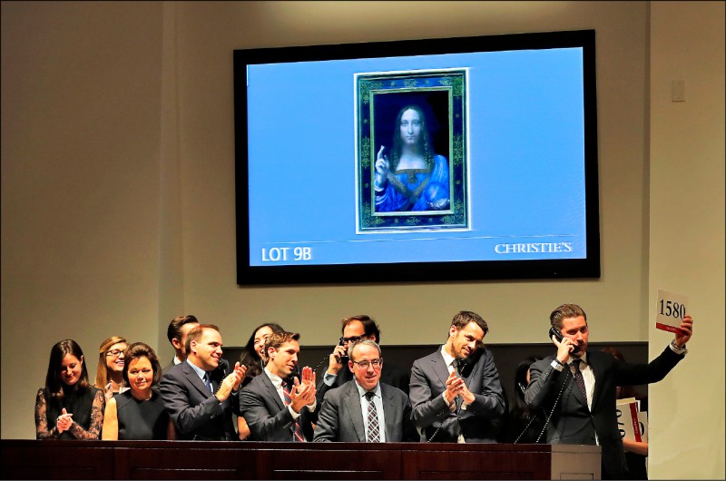 達文西畫作《救世主》於2017年11月美國紐約佳士得拍賣會上以4.5億美元拍出,成為全球拍賣價最高的藝術品。(美聯社)
