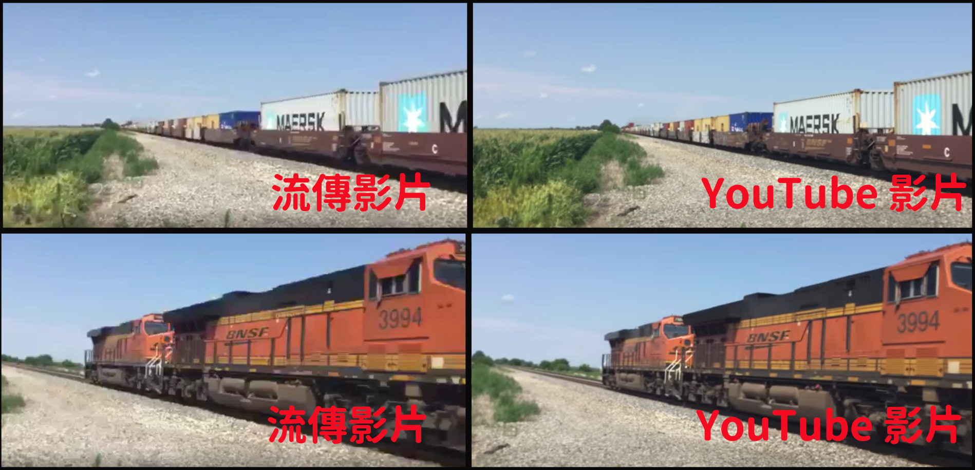 網傳「一帶一路從大陸浙江義烏至歐洲英國倫敦的陸運火車,共計有 278 節車箱」的影片。透過影片反搜工具搜尋,可以在 YouTube 上找到相同影片。根據影片標題描述,該輛火車是行經美國伊利諾州的安科納。實際搜尋影片中火車車身出現的「BNSF」字樣,可以證實這是在北美運行的貨運公司,並非流傳內容指稱「從大陸浙江義烏至歐洲英國倫敦的陸運火車」。