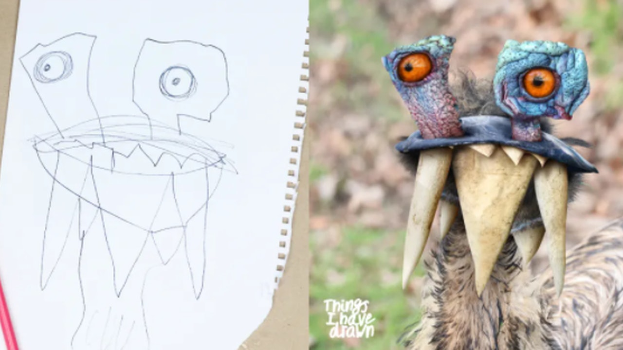 一般情況下,這些畫大家也就圖個樂,看看笑笑就過去了。但是老爸Tom不是一般人。在他看來,孩子們的這些畫反倒天真好玩又極具創造力。他甚至想過:如果孩子們筆下的東西變成現實會怎樣?眼睛鼻子都長在臉的一側的生物出現在現實生活中,你敢想?反正老爸Tom敢想!