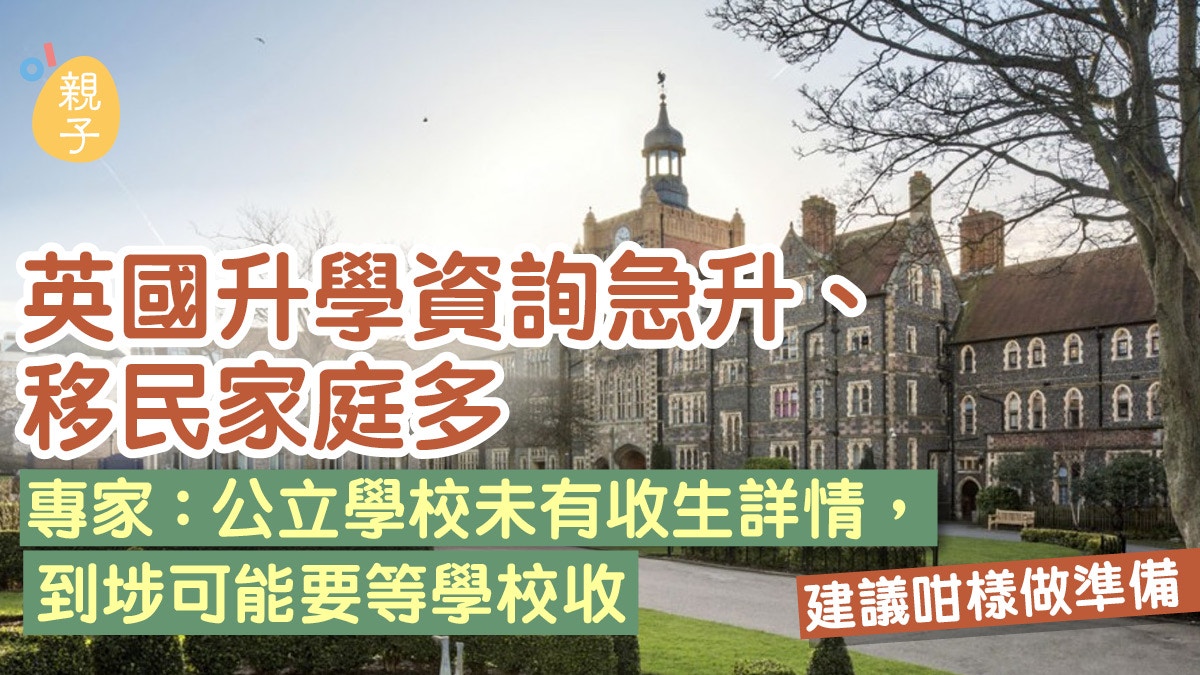 隨著英國政府放寬BNO持有人的入籍門檻,不少家庭都正計劃移民英國。創智教育國際升學中心(海外升學)資深升學顧問古潔雯表示,以往送子女到英國升學的查詢由每周2至3宗,急增至每天2至3宗,很多家長都密鑼緊鼓地籌備舉家移民或送子女先行升學的計劃。因此,她預計未來英國學校的競爭將會相當激烈。
