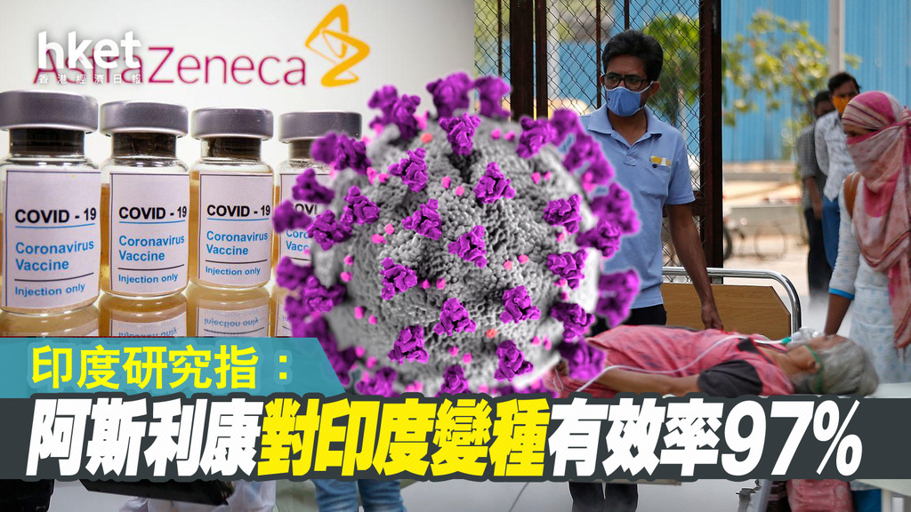 印度一項研究指,阿斯利康疫苗對抗印度變種病毒的有效率超過97%。
