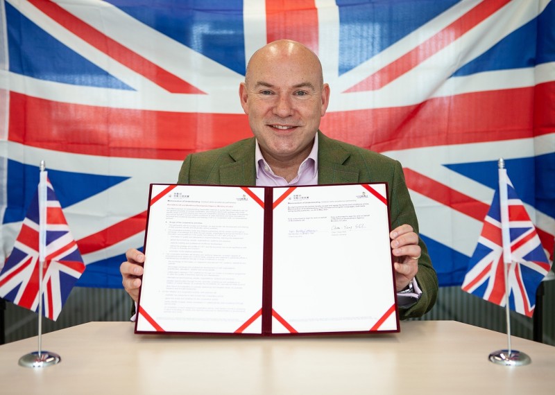 英國技能組織執行長Neil Bentley-Gockmann與勞動力發展署簽署合作瞭解備忘錄。(圖由勞動部勞動力發展署提供)