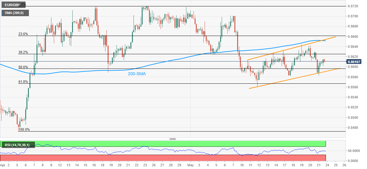 總體而言,歐元/英鎊波動表明5月12日自61.8%斐波位反彈的勢頭是有效的。