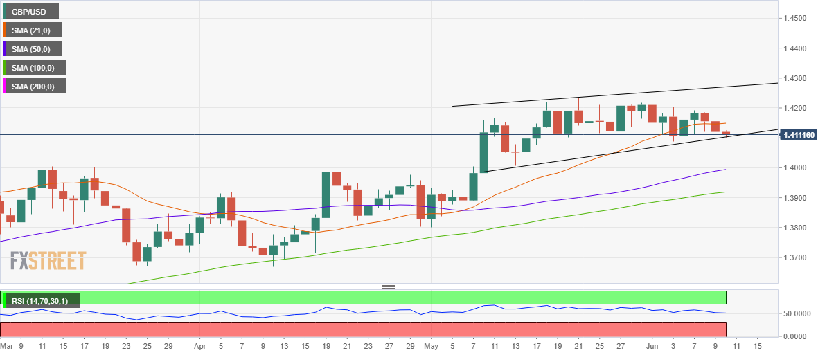 由於美元廣泛反彈,英鎊兌美元空頭依然處於主導地位,正攻擊1.4100的支撐位,關注進一步下跌。