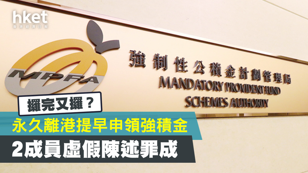 積金局公布,2名強積金計劃成員以永久離開香港為理由申請提早提取強積金時,向強積金受託人作出虛假或具誤導性的陳述,上星期被法庭裁定違反《強制性公積金計劃條例》,分別被判監禁1個月及2個月,緩刑2年。