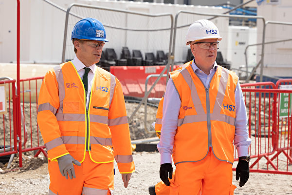 【大紀元2021年06月24日訊】(大紀元記者林紫蓉報導)6月23日,英國交通大臣格蘭特‧沙普斯(Grant Shapps)和高速鐵路二號線(HS2)公司首席執行官馬克‧瑟斯頓(Mark Thurston)抵達老橡樹公有地(Old Oak Common)的建築工地,宣布將於此興建高速鐵路二號線的車站,未來完工後將成為英國最大的車站。