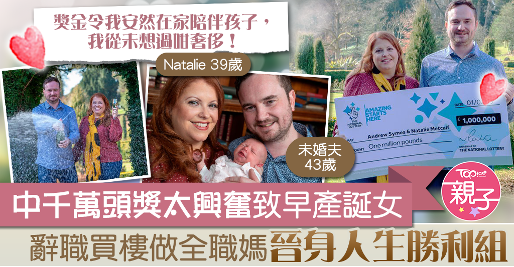 據英國《鏡報》報道,來自格羅斯特郡(Gloucestershire)39歲媽媽Natalie Metcalf,2年前贏得「歐洲百萬」(EuroMillions)100萬英鎊(約1,080萬港元)大獎,當時正懷孕的她,沒想到她準備前往領獎時,因情緒太興奮,腹中女兒突然早產足足一個月出世。