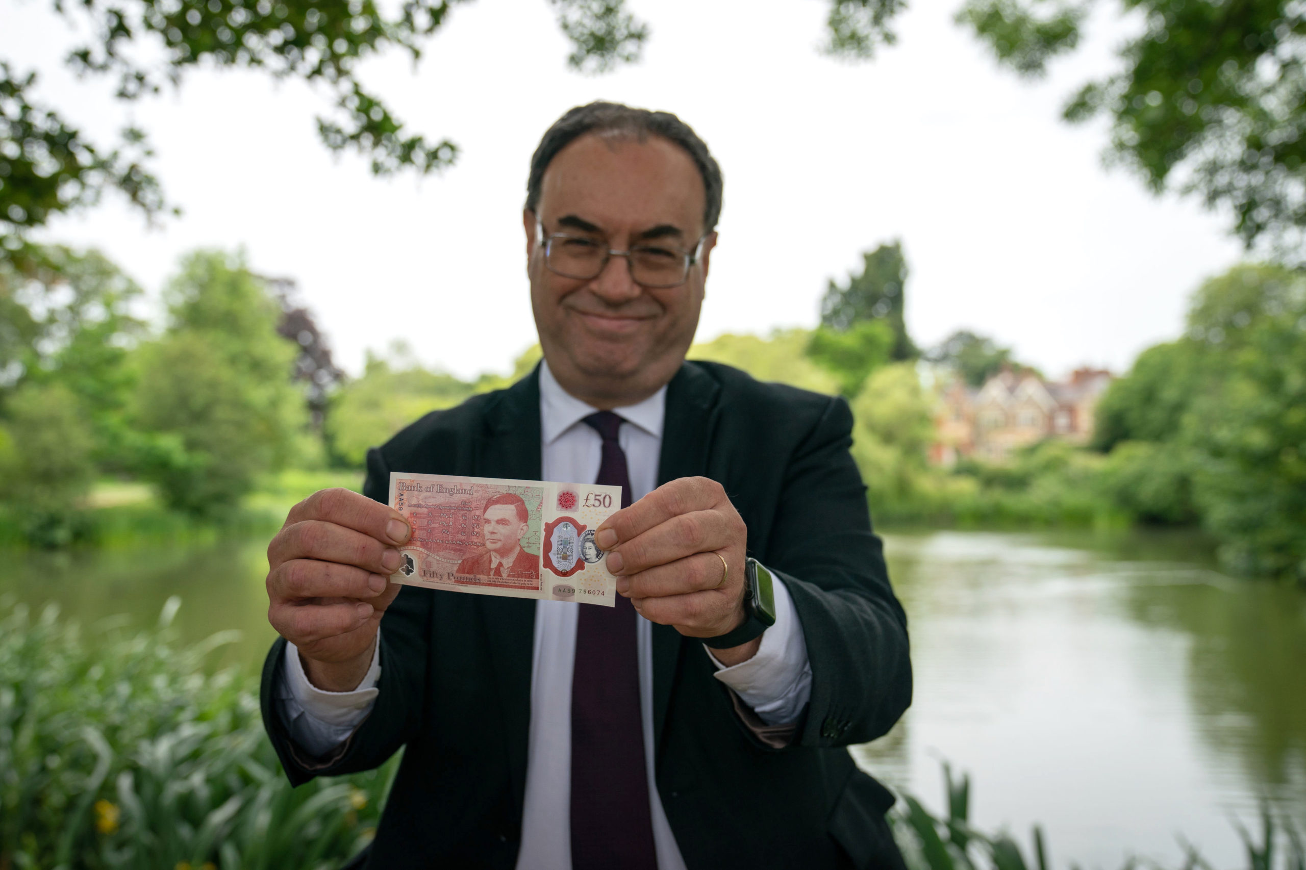 6月21日,英格蘭銀行行長安德魯·貝利(Andrew Bailey)前往布萊切利園,將新版50英鎊鈔票贈與布萊切利園行政總裁伊恩·斯坦登(Iain Standen)。貝利除了展示新版50英鎊鈔票外,還與圖靈的雕像合照。