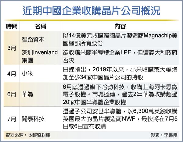 其實,在美國政府近年封鎖中國獲取先進半導體技術後,中企在海外的收購即面臨困境,尤其華為被美方「斷供」更引發中國科企的集體危機意識,紛紛大舉轉而收購中國半導體企業股權。