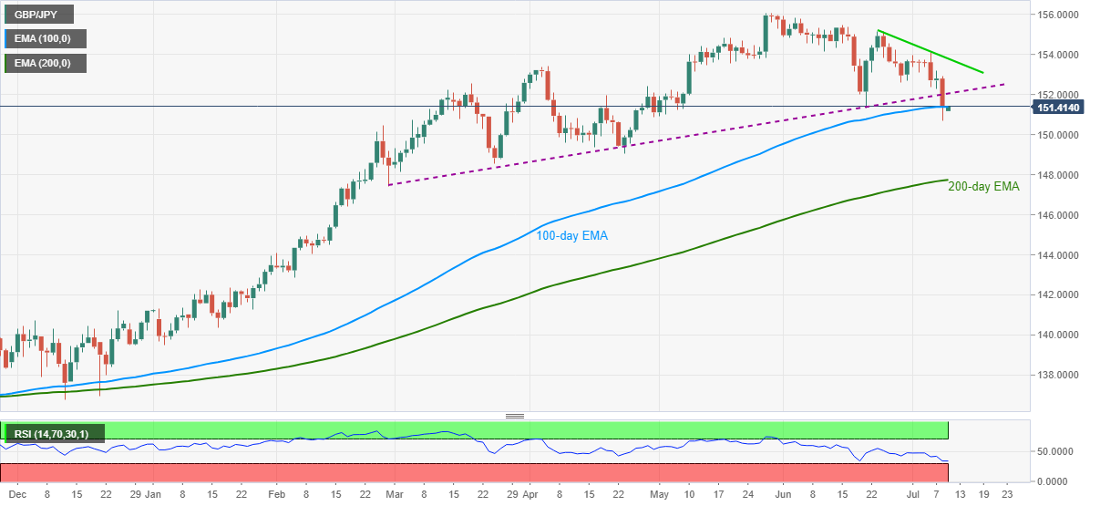 即使英鎊/日元價格突破 152.00,6 月 29 日低點 152.60 ,然後是12日阻力 153.70 附近也依次成為上行阻力。