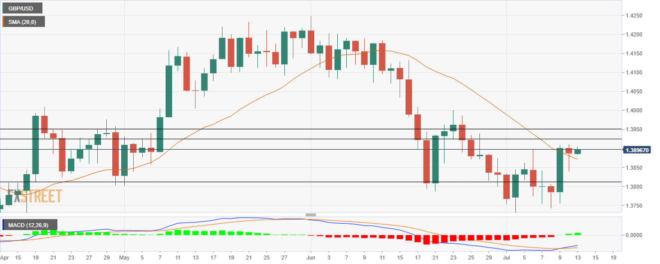 若匯價未能守住盤中漲勢,則將跌向20日SMA均線1.3870。