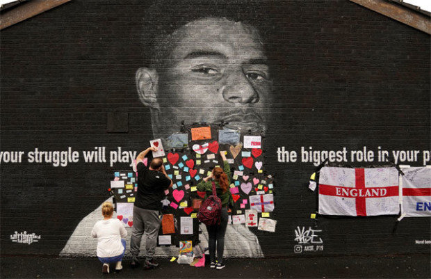 英格蘭國家足球代表隊在歐洲足球錦標賽(EURO 2020)冠軍門檻上受挫一事,隨著種族歧視風暴的猛烈,在英國引起了巨大爭議。12日,在英國倫敦溫布利體育場舉行的2020年歐洲杯決賽上,英格蘭隊1比1戰平意大利隊後,在點球大戰中以2比3負于意大利隊,未能捧起冠軍獎杯。對于在主場挑戰首個大賽冠軍的英格蘭隊來說,這是非常遺憾的情況。但是此後,瘋狂的英格蘭球迷通過社交媒體(SNS)等對在點球大戰中失利的3名英格蘭球員進行種族歧視攻擊。巧合的是,在點球大戰中失利的馬庫斯•拉什福德、傑登•桑喬、布卡約•薩卡都是非白人選手。