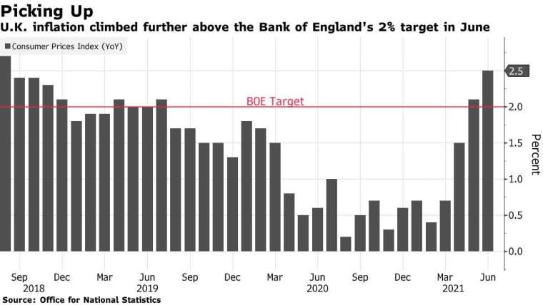 週三 (14 日) 英國公布 6 月 CPI 通膨率意外飆升至 2.5%,Michael Saunders 對此認為,隨著經濟的復甦,英國央行可能必須「在未來一或兩個月」考慮縮減刺激措施,從而抑制通膨。