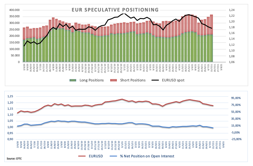 - 歐元累計頭寸連續四周增加,淨多頭頭寸達到2020 年3 月中旬新冠病毒大流行以來的水平。由於交投美元的情緒有所改善,且新冠病毒Delta變種病例不斷上升打壓經濟增長前景,歐元持續外流。同時歐元/美元過去數日在 1.1880/90 區間遇到強阻力。