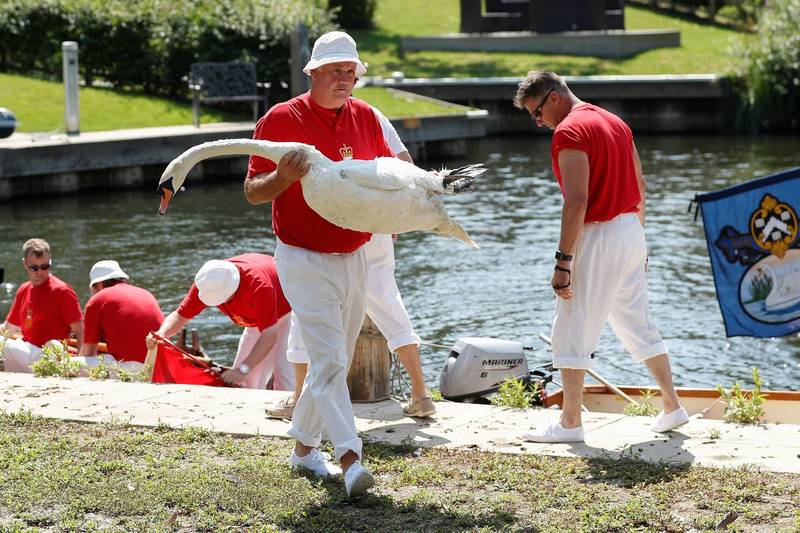 〔即時新聞/綜合報導〕英國一年一度的「鵝口普查」(Swan Upping)活動去年因武漢肺炎(新型冠狀病毒病,COVID-19)疫情取消,今年復辦並在20日開跑,大批統計員開始替女王清點她所擁有的天鵝。
