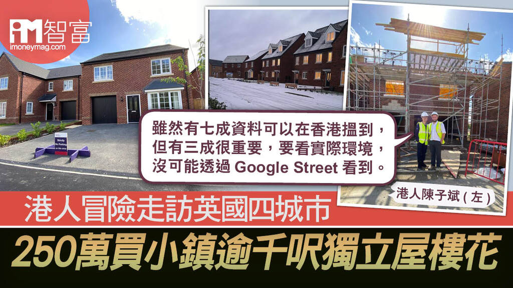 在跨國保險公司擔任區域經理的陳子斌,有意與老婆及3歲多的兒子移民英國,去年已開始做資料搜集。陳子斌原本打算在英國英格蘭的曼徹斯特(Manchester)花逾400萬元購買Apartment(高級住宅),做足資料搜集的情況下改變主意,在去年8月時,他與父親「冒險」前往英國,駕車穿梭最少四個城市,視察數個樓盤後,決定改花約257萬元買獨立屋樓花,更大談買樓經驗之道。