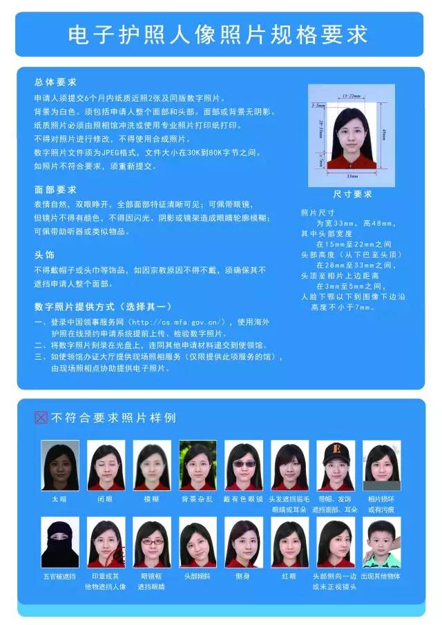 2)紙質照片2張(6個月內正面免冠彩色半身證件照,光面相紙,尺寸為48mmx33mm,頭部寬15mm-22mm、高28mm-33mm,背景為白色,不得着淺色衣服。表情自然,雙眼睜開,雙唇自然閉合,全部面部特徵清晰可見。