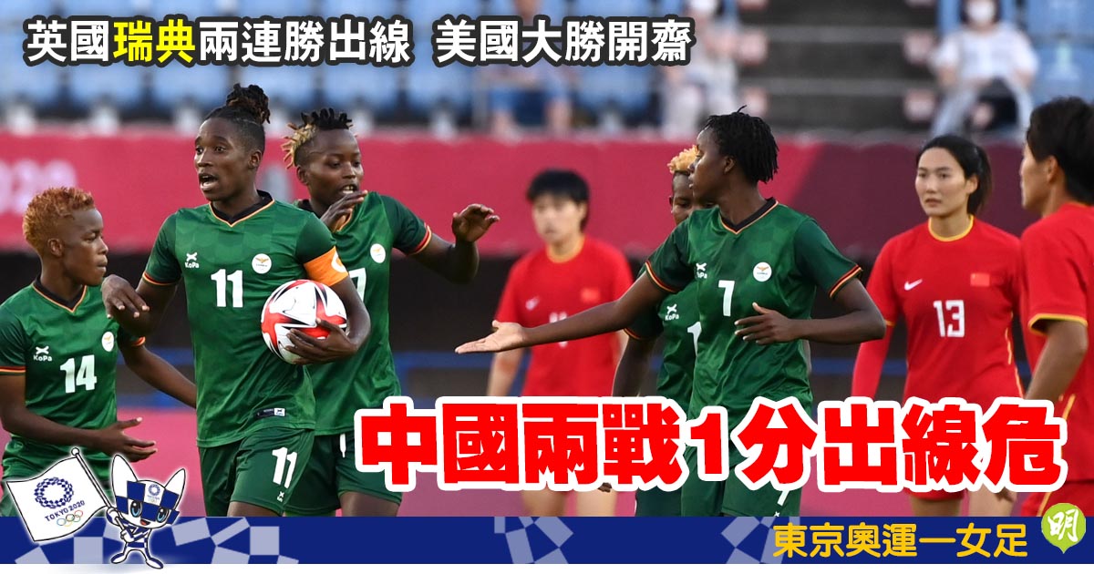 國足女子隊鋒將王霜開賽23分鐘內大演帽子戲法,但被贊比亞隊前鋒古丹安積及班達分別在15和43分鐘追回兩球,上半場只能領前3:2。班達下半場46和69分鐘再入兩球,助贊軍反超前,王霜於84分鐘射入12碼,終逼和贊比亞隊4:4。首仗吞巴西隊5蛋的國足,目前出線8強除須在最後一輪挫荷蘭隊外,還須贊軍打敗巴西隊,故此晉級機會頗渺茫。巴西隊雖有老將瑪達入12碼,卻被有前鋒美迪馬梅開二度的荷蘭隊逼和3:3。