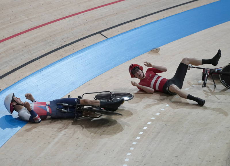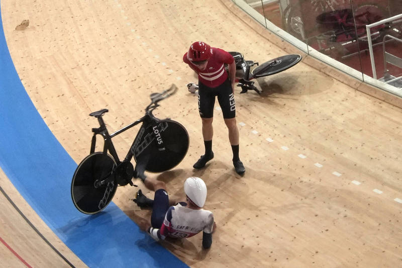 〔即時新聞/綜合報導〕東京奧運持續進行中,場地自由車男子團體追逐賽今(3日)進行預賽第4組賽事,由丹麥隊伍與英國一較高下,丹麥選手馬德森(Frederik Madsen)撞上英國選手坦菲爾德 (Charlie Tanfield),2人雙雙摔倒在地,馬德森竟當場痛罵「F*CK them!」