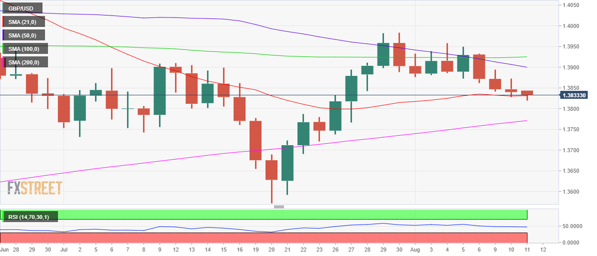 • 英鎊/美元測試處在 21-DMA 支撐的 1.3831。