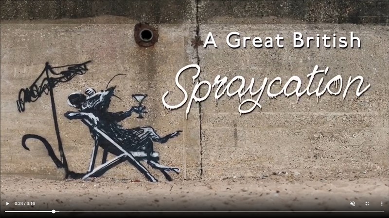 班克西在社群媒體Instagram貼文一段題為「一場偉大的英國噴畫度假」 (A Great British Spraycation)的影片,一向行蹤神秘的班克西開著一輛破舊露營車展開夏日公路旅行,還把噴漆罐存放在冷藏箱中。