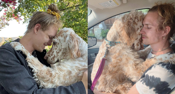 美國飼主Zack Goggins飼養了一隻英國蹲獵犬Toot Toot,因為牠天生失聰,視力受損,也患有分離焦慮症,嚴重缺乏安全感,飼主為了讓牠知道自己一直都在,會以碰額頭的方式溫柔安撫,讓焦躁的愛犬慢慢靜下來,每一次的互動分享出來融化無數名網友。