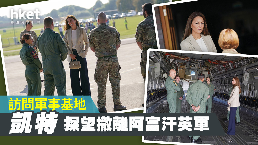 凱特於周三(15日)到訪位於牛津郡的布萊茲諾頓(Brize Norton)皇家空軍軍事基地,與參與或協助撤離阿富汗的英軍會談。從照片可見,凱特曾經登上運輸機。同時,凱特亦在軍事基地與協助難民的民眾及義工對話。