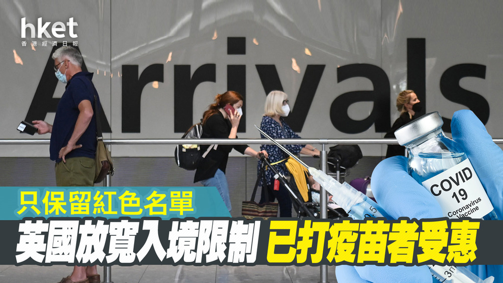 英國政府放寬旅遊限制,只會列出不建議民眾前往的紅色風險地區名單,並容許已完成新冠疫苗接種的永久居民及旅客,入境前毋須進行新冠病毒檢測,入境後也可以價格較低的LFT快速檢測,取代原先要求的PCR核酸檢測。