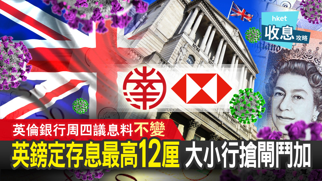 那邊廂,大小銀行早前已搶閘加定期存款息率,包括滙豐(HSBC)及中銀香港 (02388) 兩大發鈔行,但皆不敵中資行南商,7天英鎊定存年息享12厘,膺冠絕全城的高息王。