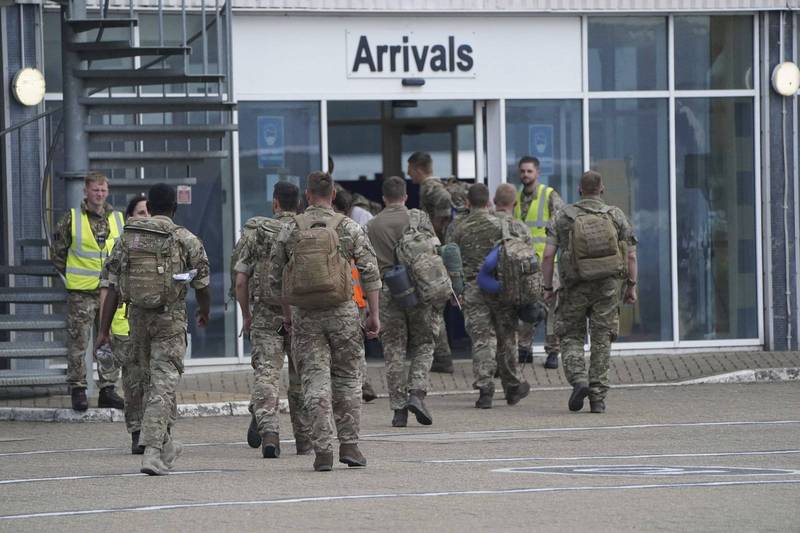 英國國防部負責阿富汗撤離的部門,在電子郵件洩露250餘名翻譯人員的名單。圖為日前從阿富汗撤回英國的部隊。(美聯社)