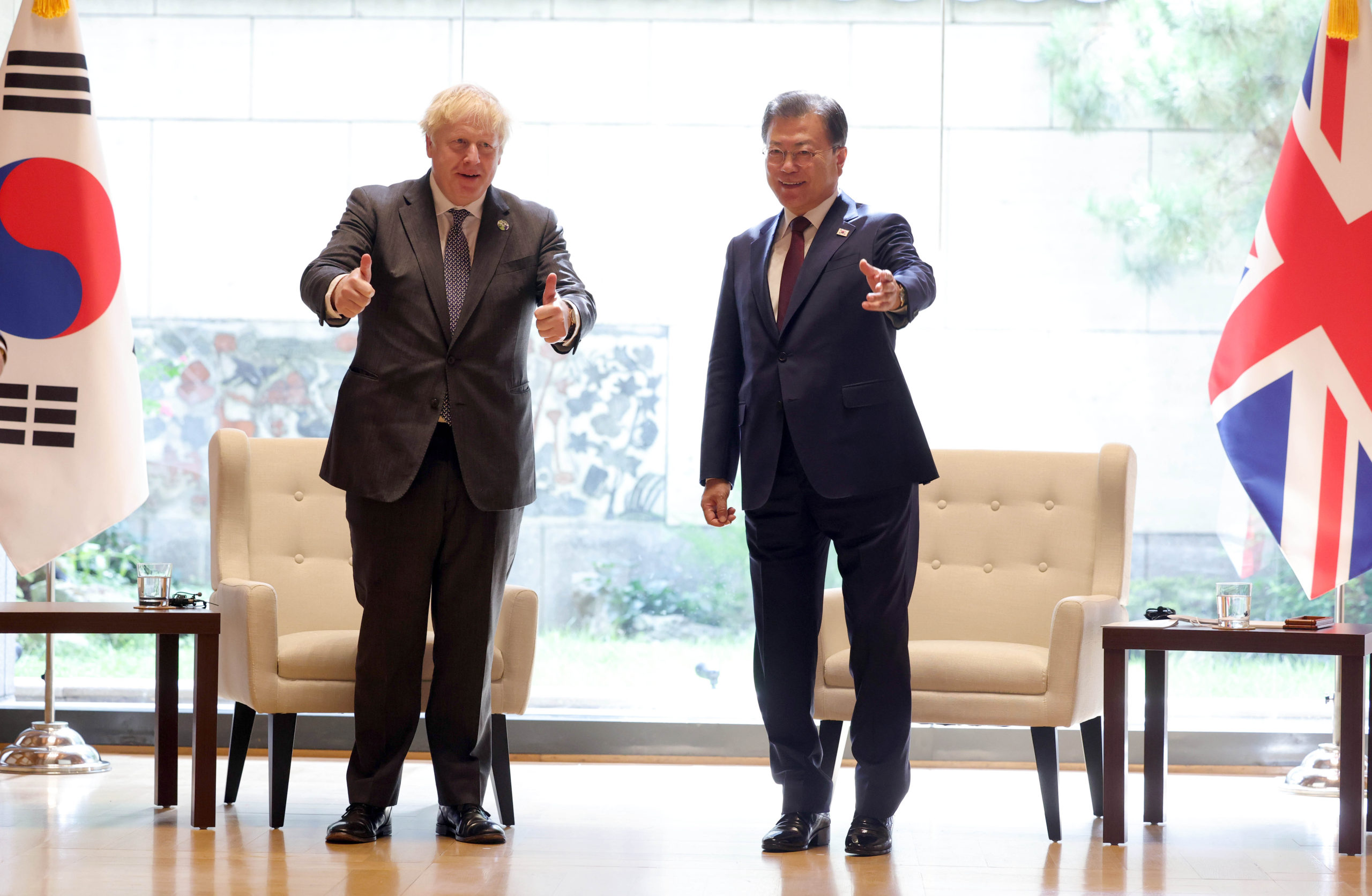 南韓總統文在寅為了參加今年第76屆聯合國大會而飛往美國紐約,並於美東時間20日透過駐聯合國代表團與英國總理強生(Boris Johnson)舉行雙邊會談,會中雙方主要談論疫苗交換合作計畫,其中強生承諾文在寅,英國將提供南韓100萬劑mRNA系列的新冠疫苗。報導分析,英國在脫毆後逐漸將影響力觸及至亞太地區。