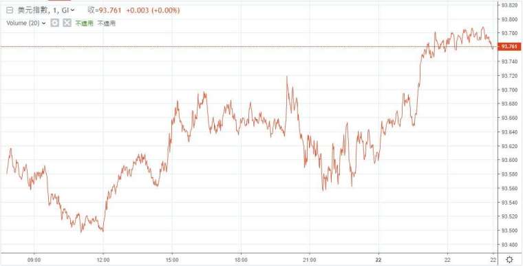 周四紐約尾盤時段,追蹤美元兌一籃子貨幣走勢的 ICE 美元指數 (DXY-US) 走高,上漲 0.14% 至 93.75。由於市場開始預期聯準會 (Fed) 面對高通膨必須提前升息,使美元上周一度達到 94.56 的一年高點。