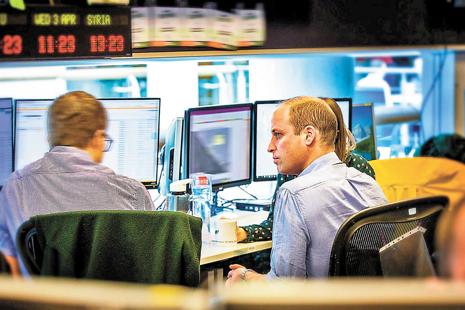 ● 英國三大情報機構與亞馬遜旗下的AWS簽約拓展AI情報活動。圖為威廉王子(右)兩年前在英國政府通訊總部(GCHQ)實習。 資料圖片
