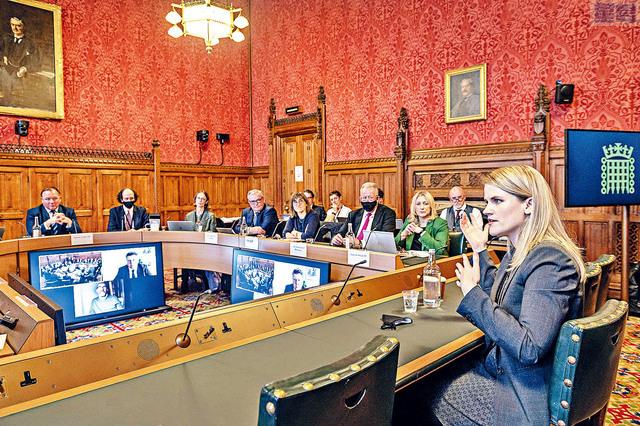 ■前員工豪根(右)出席英國國會聽證會,批評臉書開發的新業務「元宇宙」,連網絡安全的基本職責也沒有做好。美聯社