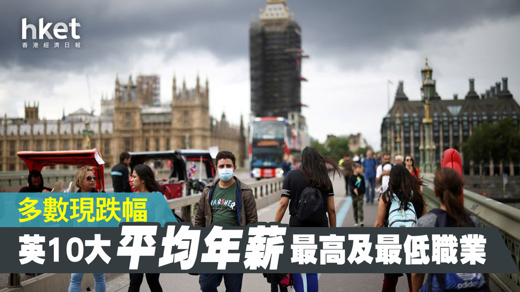 2021平均最低年薪工作中,最高收入工作為洗衣店工人,僅超1.8萬英鎊(約19.2萬港元),其他大多在1.7萬至1.5萬英水平,而且與2020年相比,當中不少職位的年薪跌幅接近或超過1成。