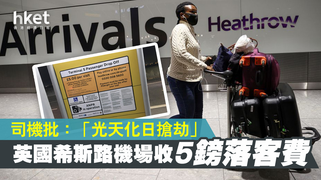 英國陸續放寬防疫限制,容許民眾出外旅遊後,希斯路機場再次熱鬧起來。但機場管理方決定,以「環境友好」為由徵收5英鎊落客費。一旦未能及時繳交,最高面臨80英鎊罰款。不少司機直指,落客費簡直是「光天化日搶劫」。