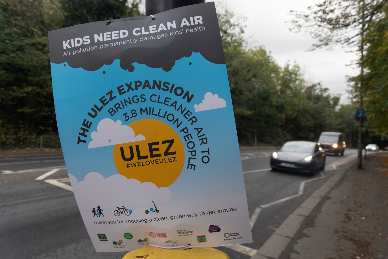 聯合國氣候變化大會將在英國舉行。圖為車輛經過英國倫敦一處「超低排放區」指示牌。新華社