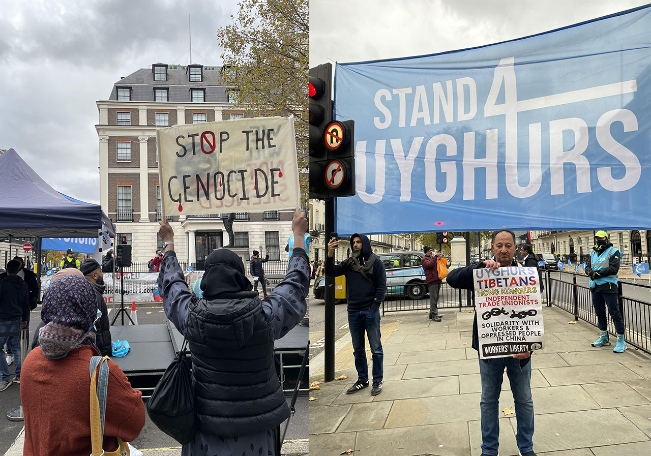 集會由專門報道英國穆斯林羣體消息的網站Islam21c發起,超過50個英國穆斯林團體響應,部分參加者由伯明翰、雷丁等地齊集倫敦。而同一時間,曼徹斯特中國使館外也有穆斯林集會,聲援在中國被壓迫的維吾爾人。