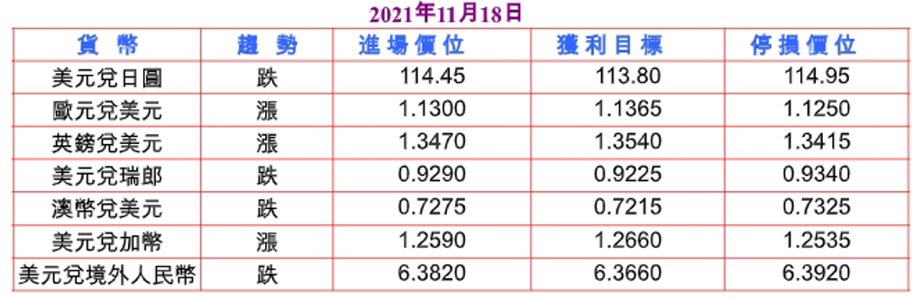 週三英國數據顯示10月消費者物價指數(CPI)與生產者物價指數(PPI)產出物價分別較上年同期漲4.2%及8.0%,皆創2011年以來最高漲幅,另外9月房屋價格比去年同期高11.8%,為十五年來第二大同比增幅,,而且10月零售物價指數升1.1%創三十年新高,強化英國央行(BOE)升息的預期,激勵英鎊兌美元自1.3394低點上漲。隨後英國脫離歐盟大臣弗羅斯特表示,與歐盟的北愛爾蘭協議可能在聖誕節前達成,而且BOE貨幣政策委員會(MPC)委員曼恩稱,公眾相信BOE能控制住通貨膨脹的,推升英鎊兌美元至1.3496高點。預估今日英鎊兌美元支撐於1.3450-70,阻力於1.3540-60。