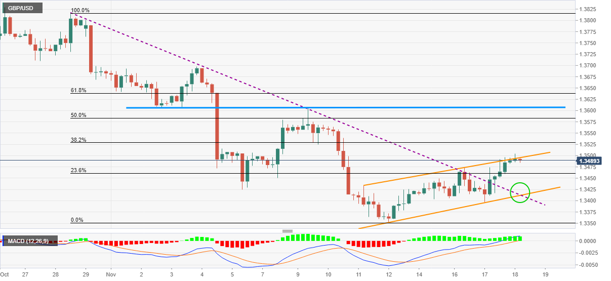 相反,英鎊反彈需要突破1.3500以及通道上軌線才能指向10月底至11月初跌勢的50%斐波回檔位,接近1.3585。