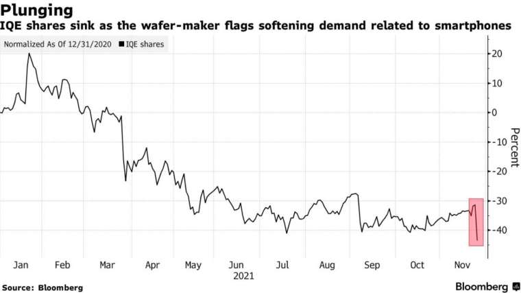 受上述消息打擊,IQE 周三創下 2 年來最大跌幅,跌逾 23%。今年迄今,IQE 已跌 47%。