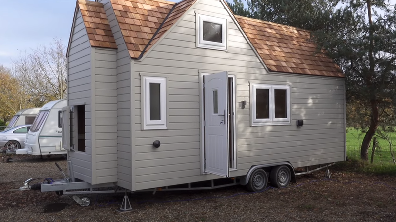 英國倫敦一對情侶在2020年底斥資約5萬英鎊買下一間有2層樓的車屋。(翻攝Youtube頻道Living The Tiny Life)