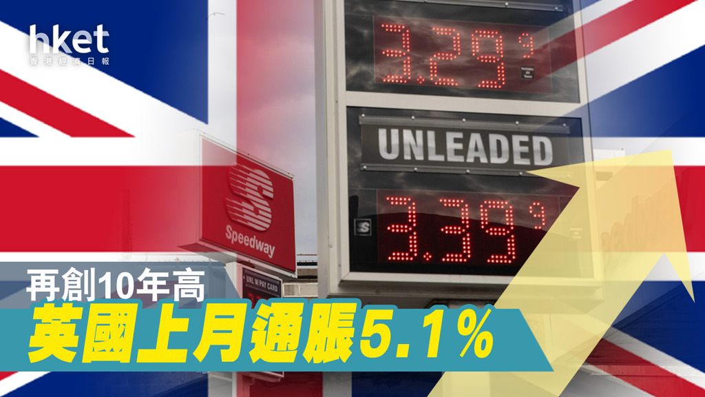 英國國家統計局(ONS)指上月CPI按年升至5.1%,再創2011年9月以來新高;按月亦升0.7%,同樣超乎預期。若撇除能源、食品、酒精及煙草價格的核心通脹,按年亦升4%,遠超所有市場預測,創1992年以來新高。
