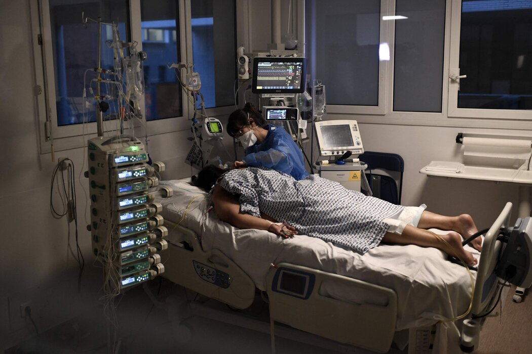 11日,在法國克雷泰伊的一家醫院的急救病房裡,一位病人正在接受治療。 Stephane De Sakutin/Agence France-Presse — Getty Images