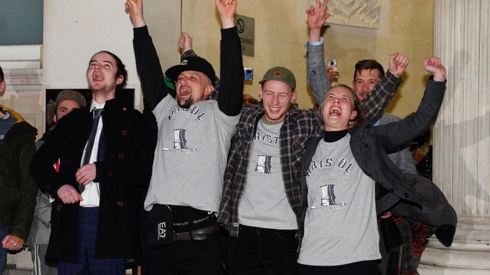四個青年人此後被控損壞公物,但本周英國一個陪審團裁定他們無罪。