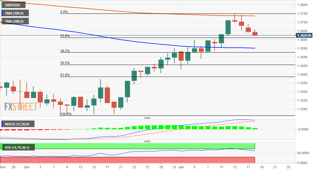 英鎊/美元連續第三天走低,延續了上週從200日移動平均線(或10月29日以來的最高水平)開始受阻後的跌勢。該貨幣對在歐洲市場前半段維持其賣盤基調,目前見於一周低點1.3620附近區域。