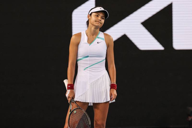 〔體育中心/綜合報導〕去年贏得美網一夕爆紅的「英國甜心」拉杜卡努(Emma Raducanu)首登澳網舞台,今天受到右手的水泡影響,臨場發揮不佳,以4:6、6:4、3:6落敗,止步女單第二輪。