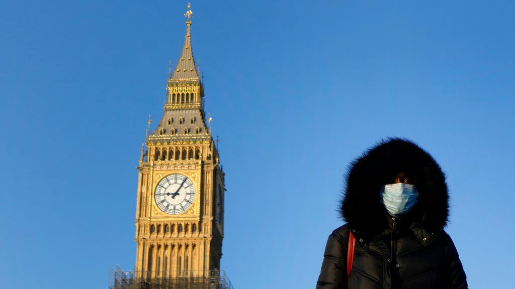 英國新冠肺炎疫情:圖為1月21日,一名女子在倫敦街頭走過。(AP)