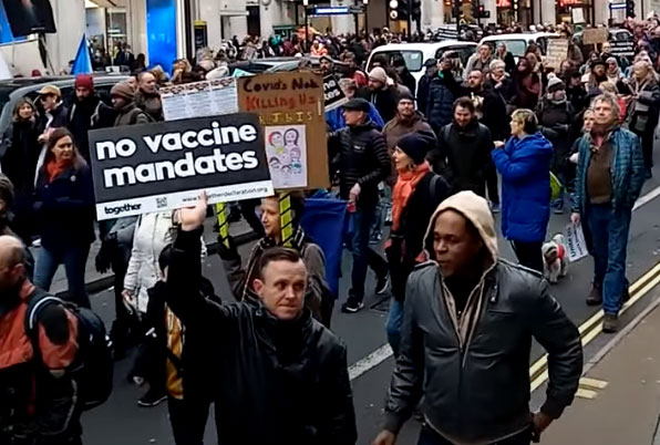 歐洲多國都有示威,反對防疫限制措施。 在英國,有民眾於周六(1月22日)上街,抗議政府防疫工作,當中有醫護集會,抗議當局強制國民保健署的前線員工接種疫苗,認為是侵害人身自由。 在曼徹斯特及伯明翰等英格蘭大城市,亦有聲援醫護的活動。 英國國民保健署就指,截至去年大除夕,已有超過9成醫護完成接種疫苗,仍未打針的7至8萬名醫護,最遲要在下月3日前打至少一針,4月1日前打齊兩針,否則會失去工作。 (網上片段截圖) Source 文章導覽 軍情動態》去年底從航艦墜海英國F-35B戰機殘骸照首度曝光 – 自由時報 網討蔡英文博士照破論文門彭文正爆英國法官做新裁決新聞大白話20220122 – YouTube
